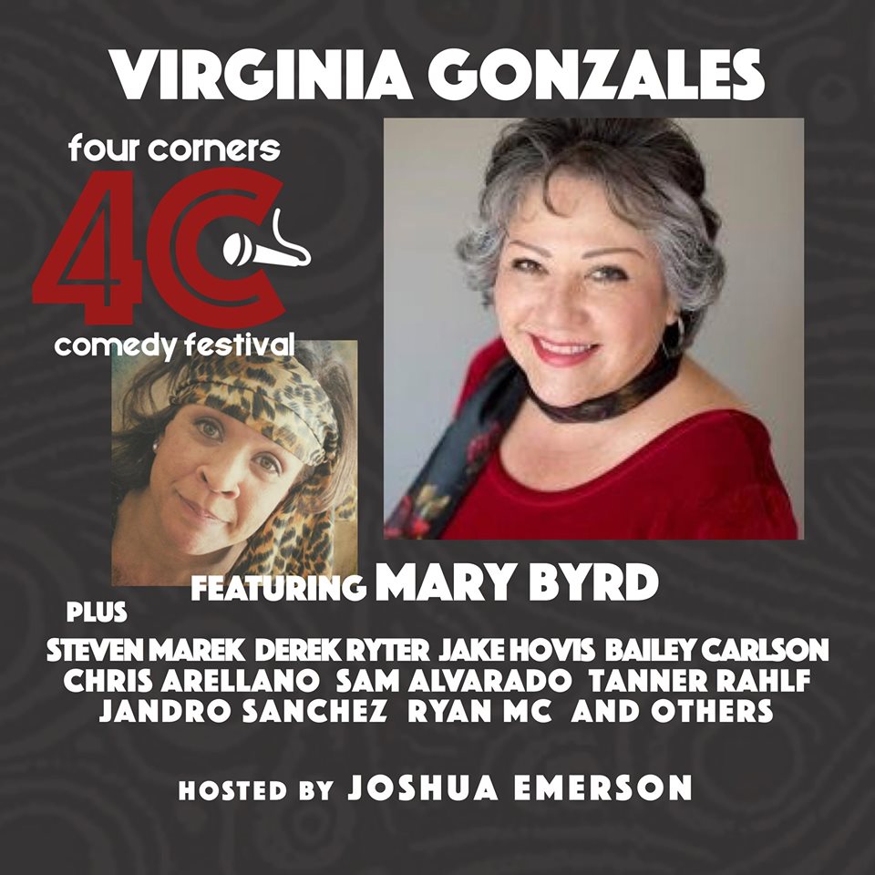 Virginia “V” Gonzales has been invited to headline a performance at the 3rd Annual Four Corners Comedy Festival (FCCF) that will be held August 22 – 25, 2019, in beautiful Durango, Colorado! The afternoon comedy show is featuring Mary Byrd, and a full line up of talent. The show is scheduled for Saturday, August 24th, 2019, at 3 pm at the Henry Strater Theater.